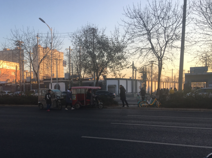 掉头回去的摩的,又是去哪里拉客的呢?只见摩的沿着成寿寺路向北,再向西拐进了成安路,而后又沿路来到了横道沟西街。在这里,有一排摩的停在路侧等候拉活。他们的顾客,主要是住在道路北侧方庄南路18号院的上班族。