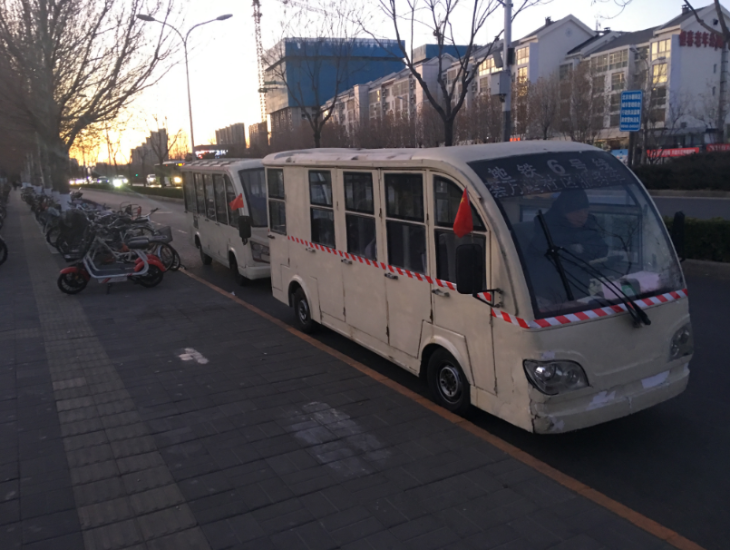 黄渠地铁站旁,停靠着通往附近社区的摆渡车