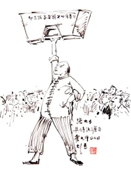 见面会后冯骥才在接受晚报五色土采访时说,关于奇人们的写作和绘画通常是同时进行的,他平时很喜欢收集本子,灵感来了就在本子上写个标题,写个人物的名字,或干脆画一张人物画。“我的写作是相当自由随意的,没有什么固定的模式。写人物最重要的就是活灵活现,几笔就把人物形象立起来了。”