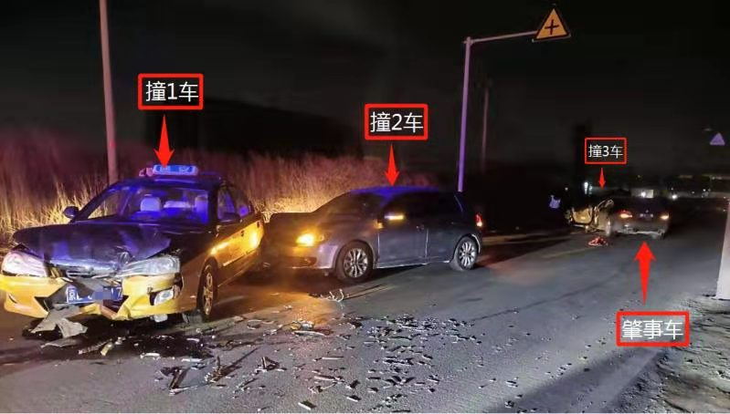 经管界沙河交通大队事故办案民警通过现场勘察,确定肇事车驶入逆行,并先后与3辆车相撞,4辆车的安全气囊全部弹出,好在并无人员伤亡。