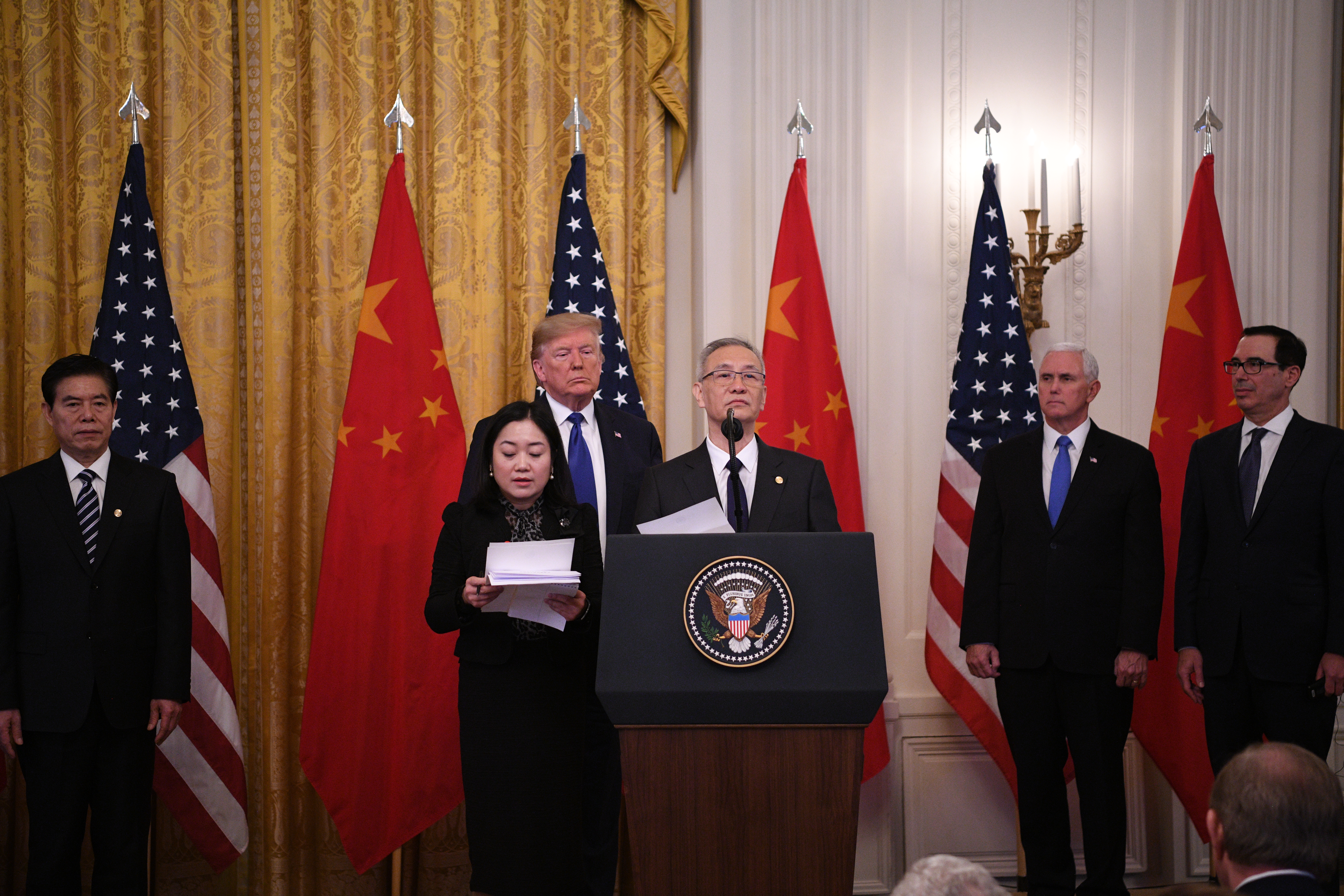 ↑ 1月15日,刘鹤出席在美国首都华盛顿白宫东厅举行的中美第一阶段经贸协议签署仪式。新华社记者 刘杰 摄