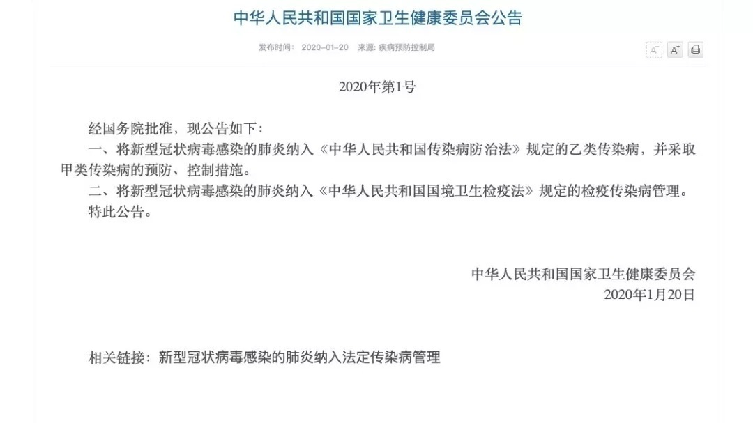 刚刚,国家卫健委发布1号公告!