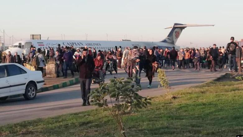 伊朗国家电视台画面显示,客机“生硬着陆”后,乘客们冷静地从前端舱门或中部舱门走下飞机,手中还拎着随身行李。一些站在地上的人帮助这些乘客下飞机。