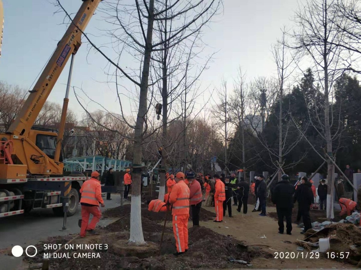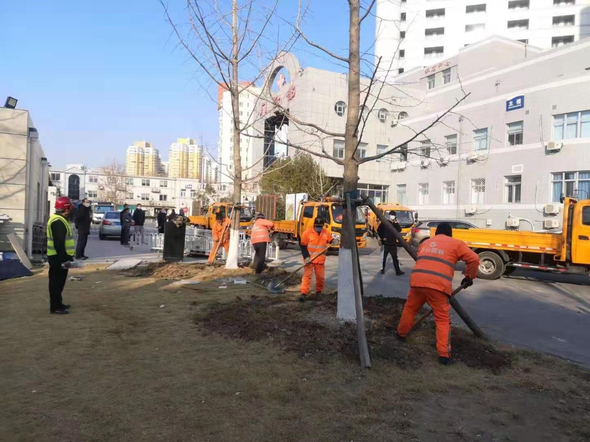 “东方医院将在医院西南侧原址重新建设发热门诊用房,但施工区域有20棵树需要尽快移走……”疫情就是命令,防控就是责任,丰台园林绿化局立即完成审批并集结施工工人,1小时就完成了现场集结开始动工,一直干到当天晚上9时,用7小时移走了20棵树。