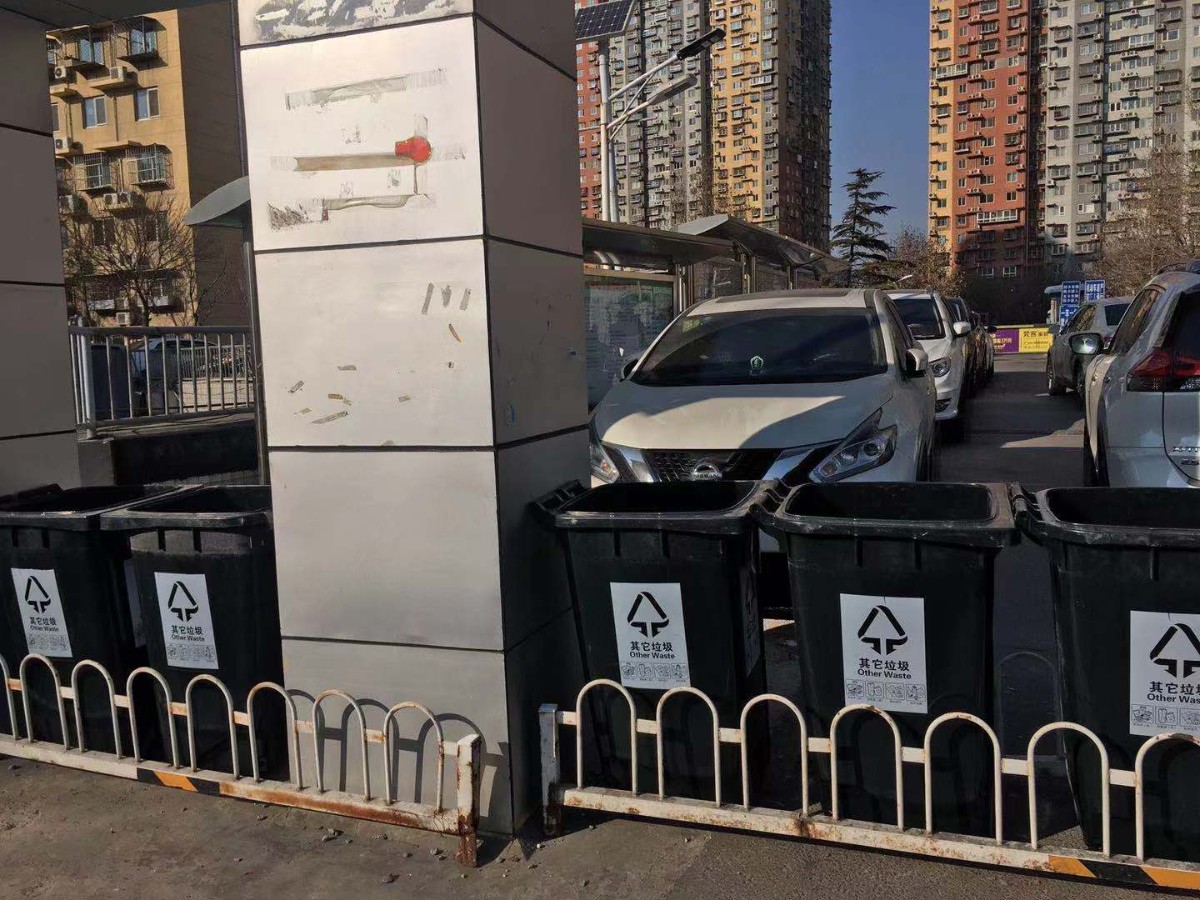 这两天,家住朝阳区常营金隅丽景园的居民们发现,小区的几个进出口前多出了一排垃圾桶。