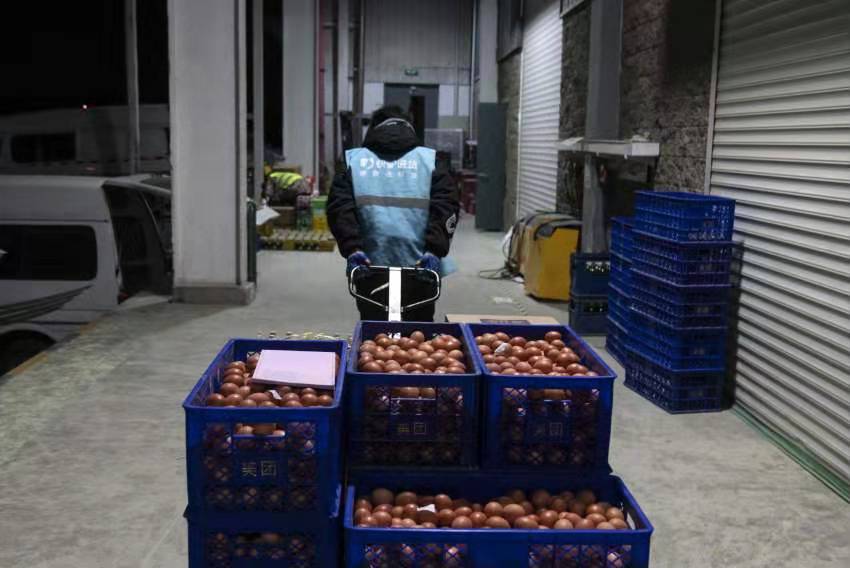 为保证北京市场的生鲜不断档、不断供,海淀企业美团公司的美团买菜全力维持站点正常运营,努力保障居民的三餐食材供应。