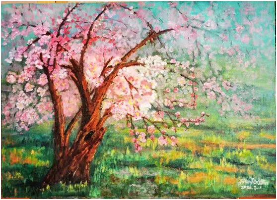为了歌颂奋战在武汉白衣天使,以武汉市花梅花为题材内容,创作了《傲骨梅花别样红——致白衣天使》,白衣天使们象梅花一样坚强和美丽。从画面上,也看到了明天的美好。