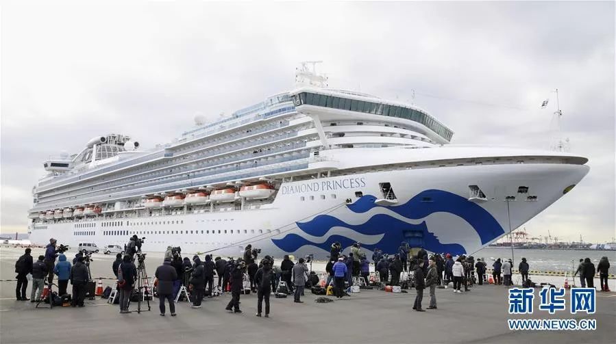 2月6日,在日本横滨,“钻石公主”号邮轮靠岸准备接受物资补给。新华社