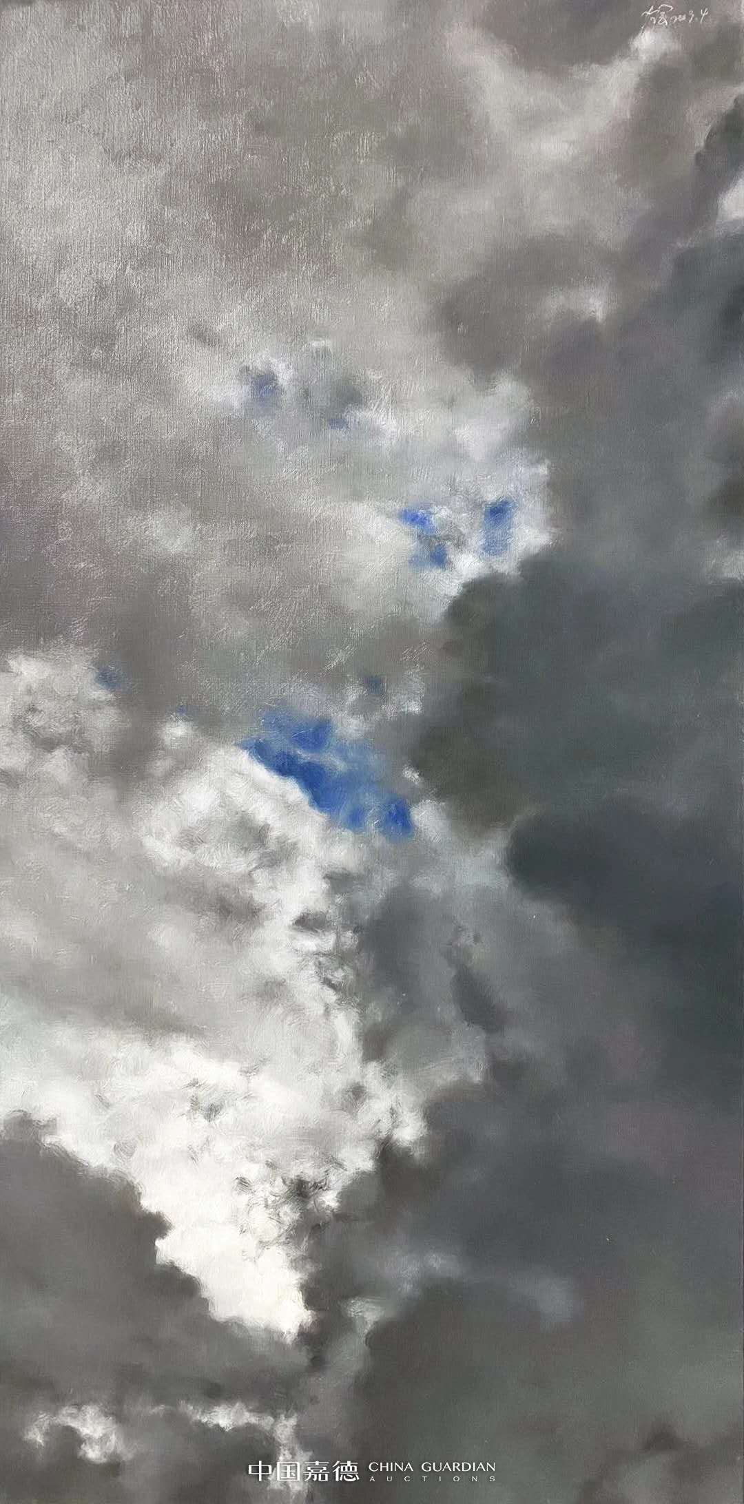 冷军油画《倾斜的云》