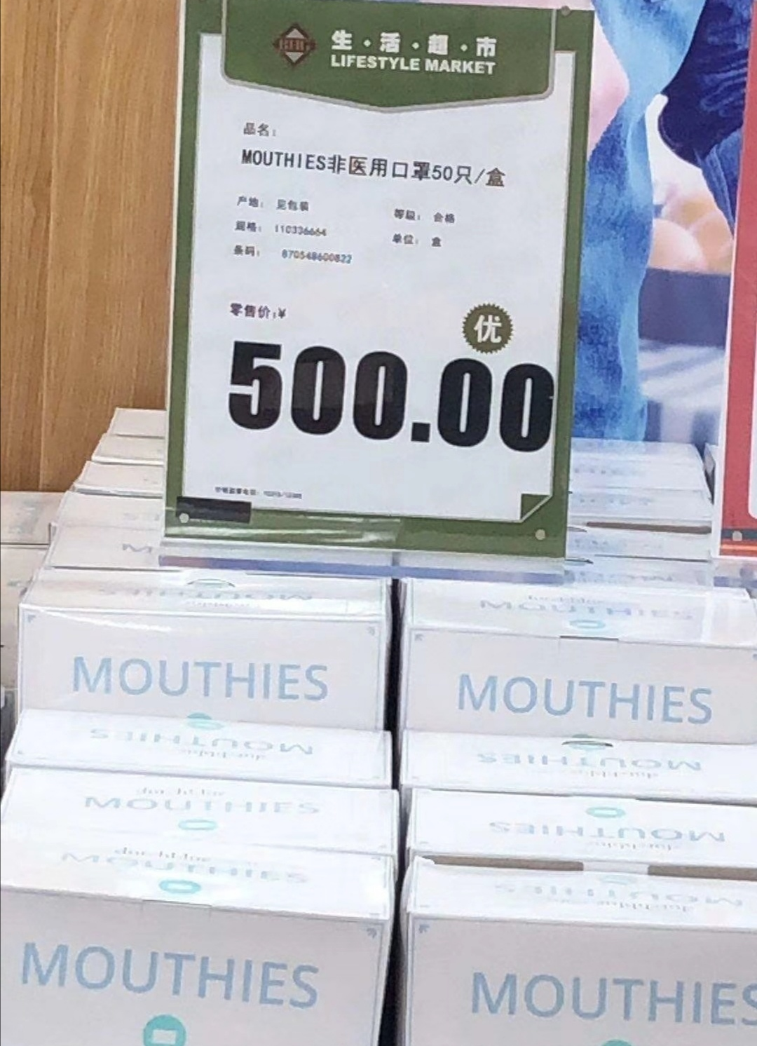 “听说华联今天开卖口罩,一大早就有不少人来排队,结果发现口罩只能按盒买,一盒500块钱。”一大早就到华联超市太阳宫店购物的孙先生发现,超市里摆出了口罩到货的宣传,不少顾客兴奋地前去排队选购,到了柜台前却望而却步。现场的非医用一次性口罩每盒50片,售价500元,相当于一片口罩10元。