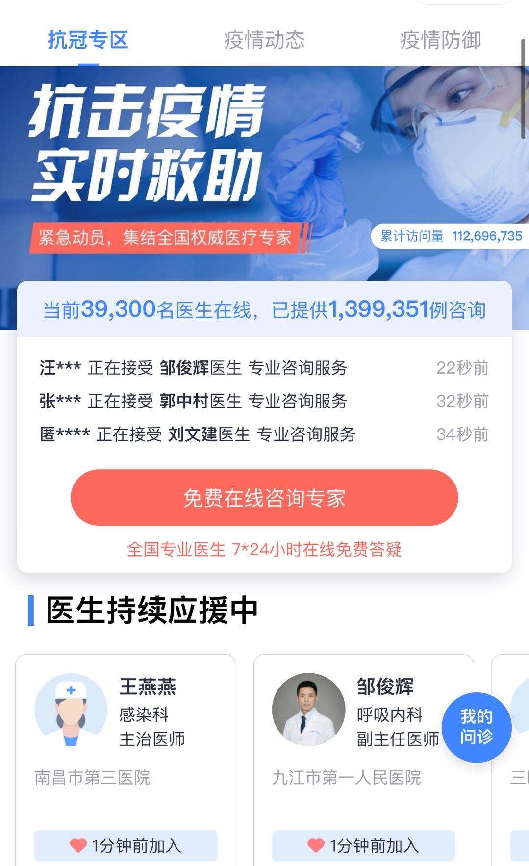 各大平台在线问诊量激增