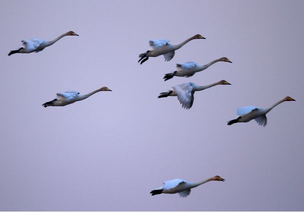 “我们在监测中也注意到,近年来,迁徙过程中,天鹅宝宝的成活率越来越高。有一个家庭带五只、六只、甚至七只宝宝迁徙的。”李理说。这跟近年来,全国湿地修复、保护工作的开展密切相关,不管是繁殖地、越冬地还是迁徙途中的补给地,食物量都非常丰富,而且,人为的盗猎行为也极少,以家庭为单位的种群迁徙安全系数越来越高。