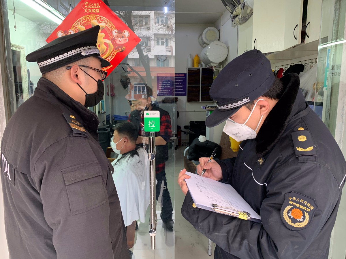 执法人员也建议辖区居民:去理发店理发,可提前与理发店预约,避免人员聚集。