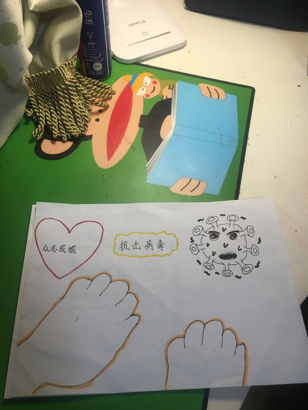 前两天,张欣怡陪爷爷去买菜,出入小区时,看到有工作人员在给大家测量体温,还有一位叔叔手把手地教她洗手的动作,她便将这些记下来,回家告诉了妈妈。