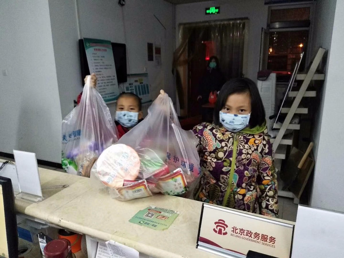大兴清源街道康馨园社区的孩子们用零花钱买了零食送来,放下就跑开了。