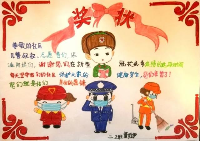 在孩子们绘制的奖状上,画着民警、环卫工作者、医护人员和雷锋的卡通形象,写着孩子们想对“获奖者”说的话。孩子们将自己绘制的奖状“隔空”颁发给自己在武汉抗“疫”的舅妈、小区门口的志愿者爷爷、抗“疫”在一线的基层工作者、医护人员等,以这样特殊的方式学习身边榜样,学习雷锋精神。