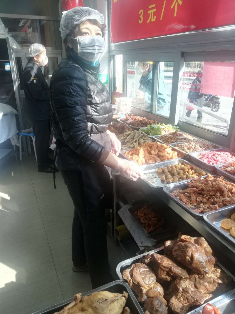 现在,致美斋饭庄的堂食营业尚未恢复,只剩下一个外卖窗口,每天按时供应的主食和副食也成了周边百姓日常生活中最贴心的保障。店里像王颖一样的女职工还有十几个,今天她们依然全都在岗为市民烹制美食。