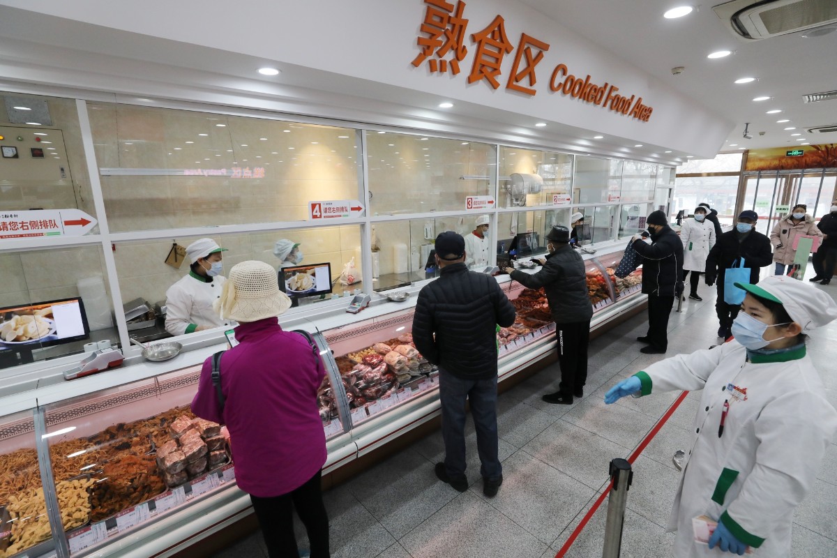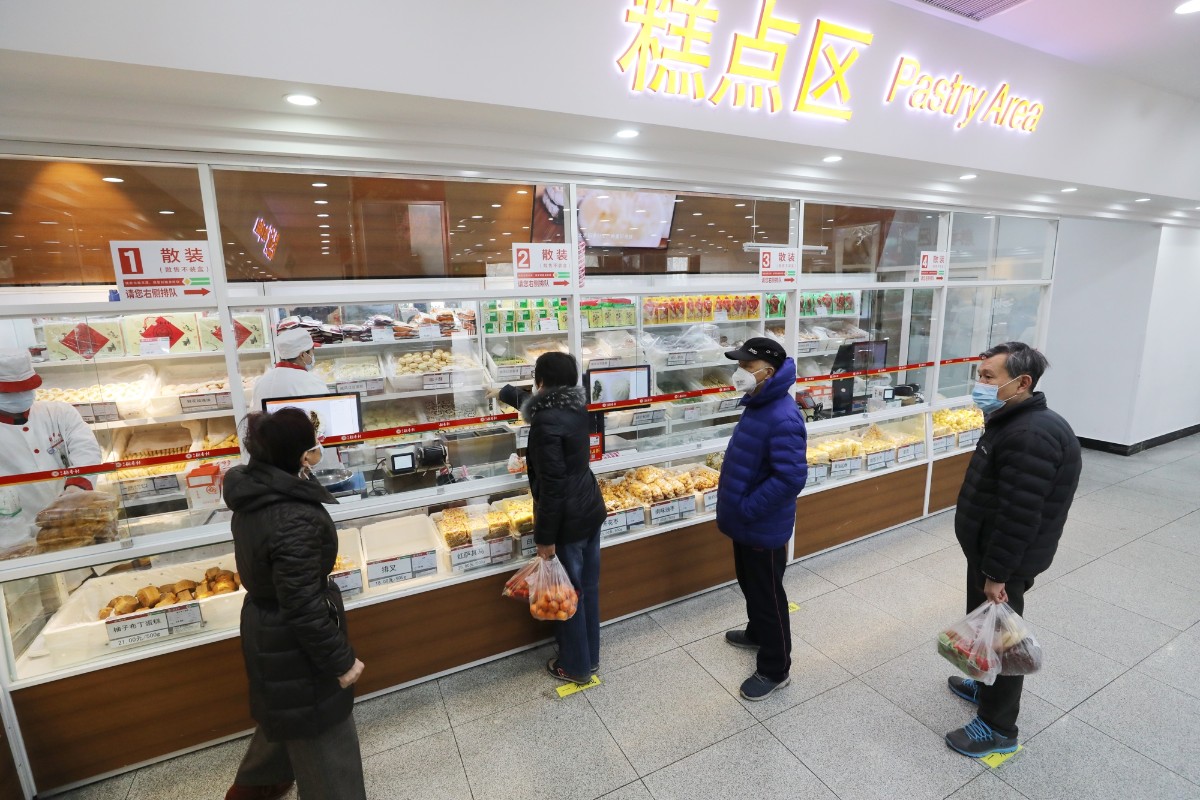 今天上午,在稻香村第三营业部,顾客们严格按照一米间距有序排队购买熟食和熟食。现场各类商品货源充足,价格稳定,购销两旺。据介绍,随着本市各行业复工复产,百姓生活逐渐向正常状态恢复。稻香村各门店在确保货品齐全的情况下,采取间隔一米,食品提前分装,店内定时消杀等措施在保证市民安全的前提下,让大家快捷购买到心仪的食品。第三营业部日均接待顾客2000多人次,主食、熟食等百姓生活需求较大的商品销售额同比均大幅增长。