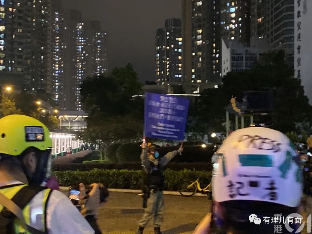 活动中,曱甴们又开始耍起老戏码,堵路。港警曾多次举“蓝旗”,告诫参与者这是非法聚集,要求自动离去。