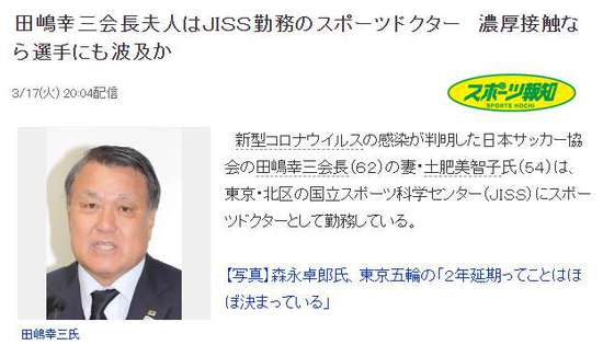 北京时间3月17日下午,日本足协在网络上召开记者会,宣布日本足协主席、国际足联执委、日本奥委会副主席田岛幸三新冠病毒检测结果呈阳性。