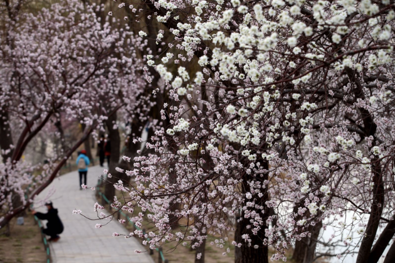 3月18日,颐和园西堤近2000棵山桃花进入盛花期,在这春暖花开,万物复苏的日子里,俨然美成一幅画。