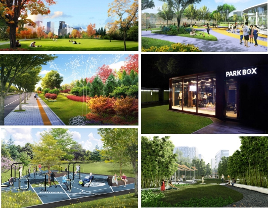 “康体运动区”位于公园西侧,公园将打造由北向南贯穿全园的智能健身跑道,与商务区的慢跑环相连接,同时公园内部形成闭合的跑道环,多层级的解决市民跑步健身的需求。同时,以慢跑道为主线,串联五人足球、篮球、网球等多种大众健身活动场地以及健身、攀岩等多种运动形式,开放后将采取线上线下多种智能化管理模式,与商务区内健身场地形成室内外完整运动系统,形成绿色运动磁场,服务商务区及周边居民运动健身需求。