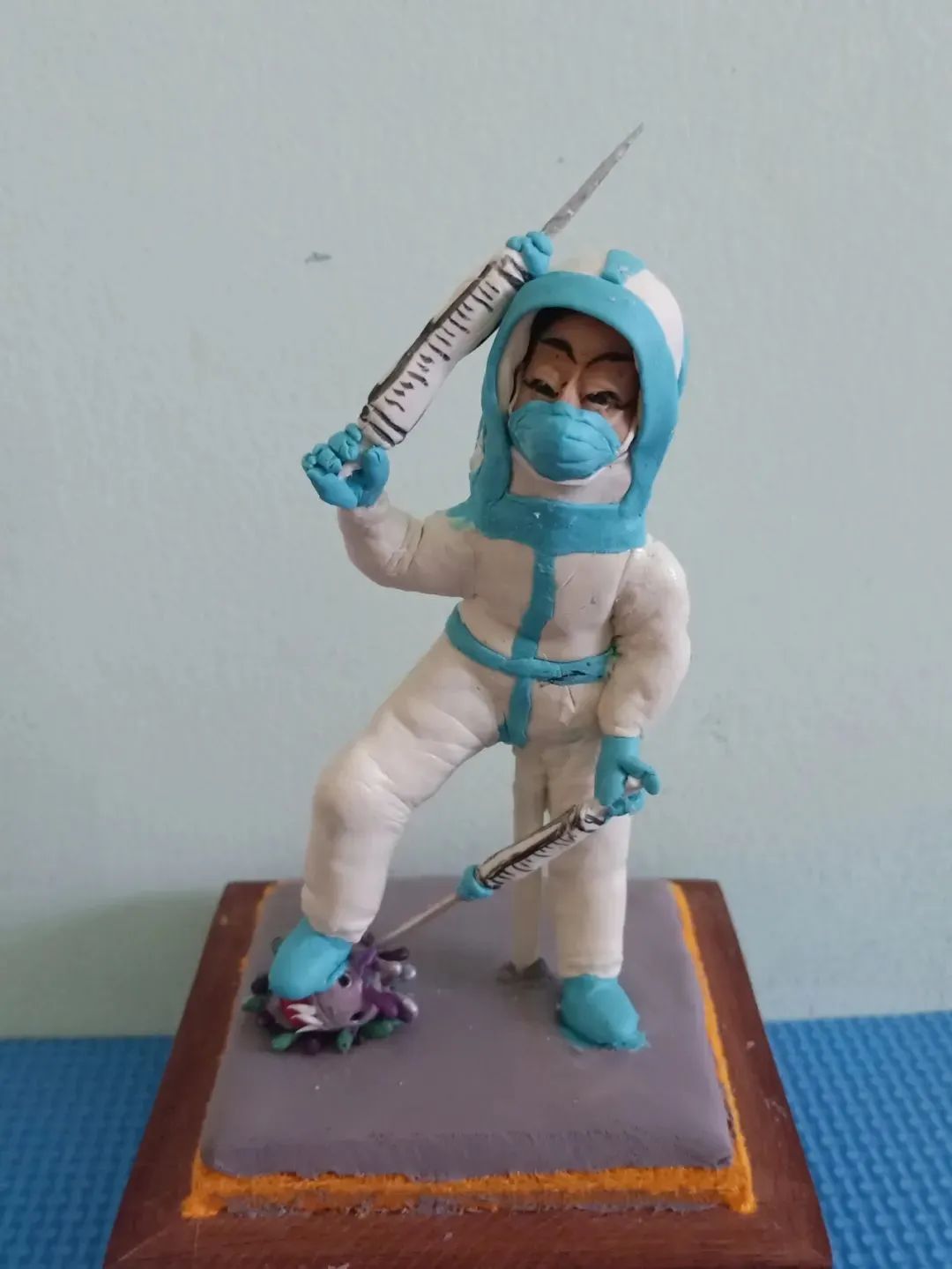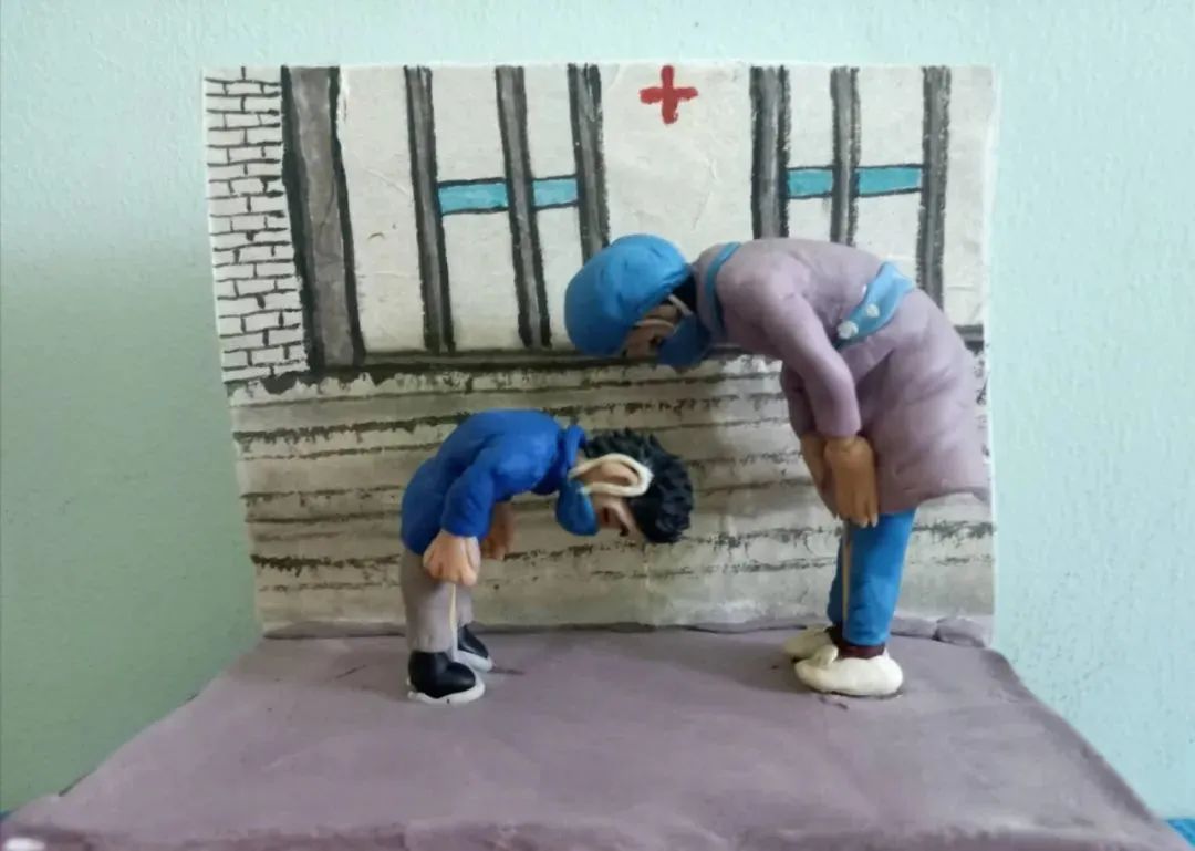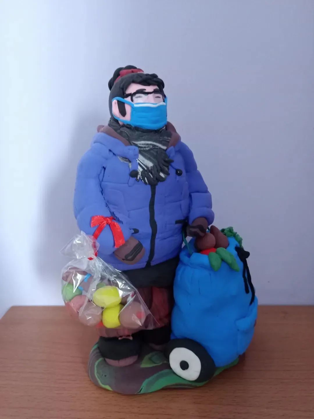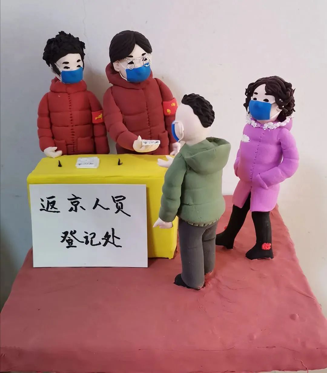 面塑《返京进入小高潮安全防疫很重要》李莲英 作