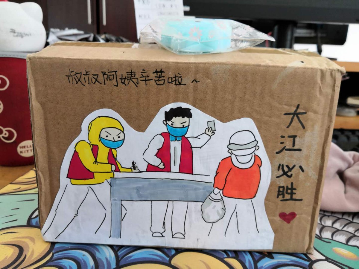 送来这份礼物的是一个初中小女生,她叫田扬心羽,她的妈妈是前门街道大江社区的社工刘扬。这几天,心羽学习以外的时间几乎都用来制作这份礼物,而香皂的制作并不简单,需要先在网上买来皂基,然后经过加热、融化皂基、加入配料、长时间搅拌、着色、定型等多个步骤,这一小箱香皂,她用了一周时间才制作完成。当被问到为什么要给妈妈工作的社区送香皂时,心羽这样说到:“爸爸妈妈每天都在战‘疫’一线忙碌,我想尽自己所能为爸爸妈妈和他们的同事做一点事情,这样就觉得我也和爸爸妈妈战斗在一起,我们都在为战胜疫情做贡献。”