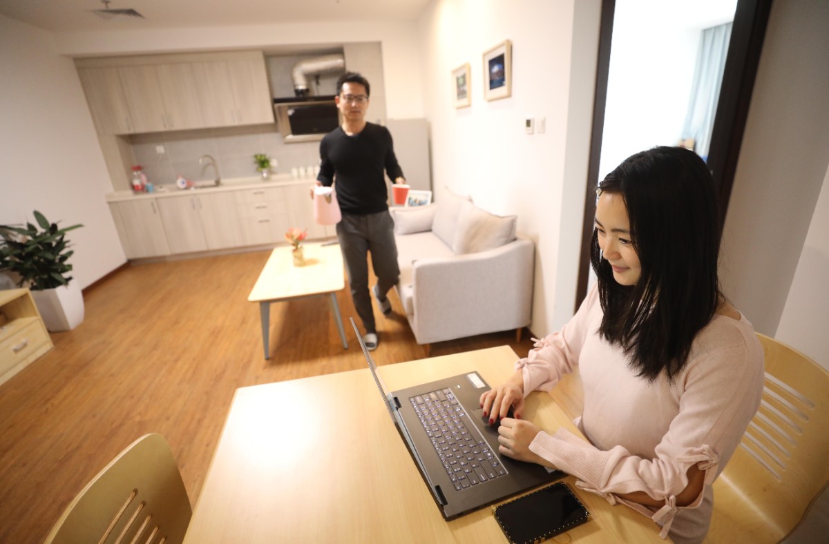 除了靠近办公楼,人才公寓还有不少优点:租金低廉、精装修、配有全套家具家电、公共区域每2小时即消毒一次、物业电话24小时服务……目前,已经有100多位人才入驻人才公寓。