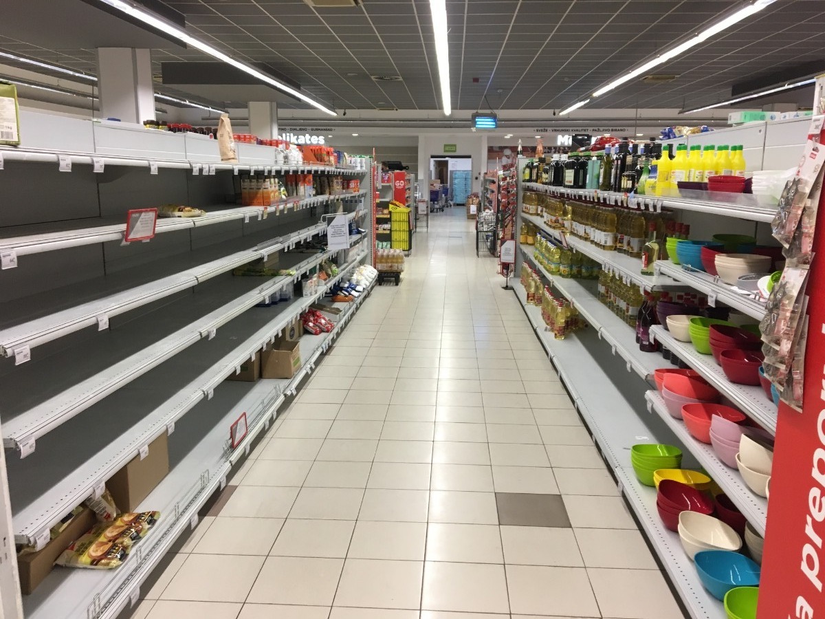 贝尔格莱德一家超市,部分货架已空。