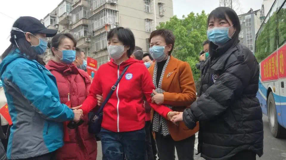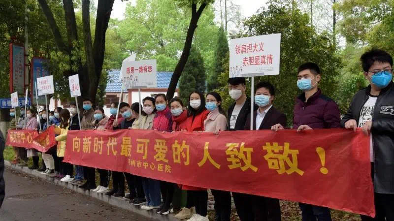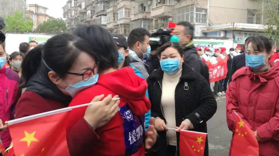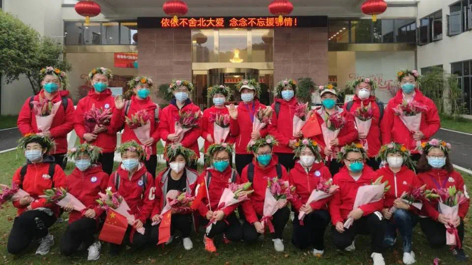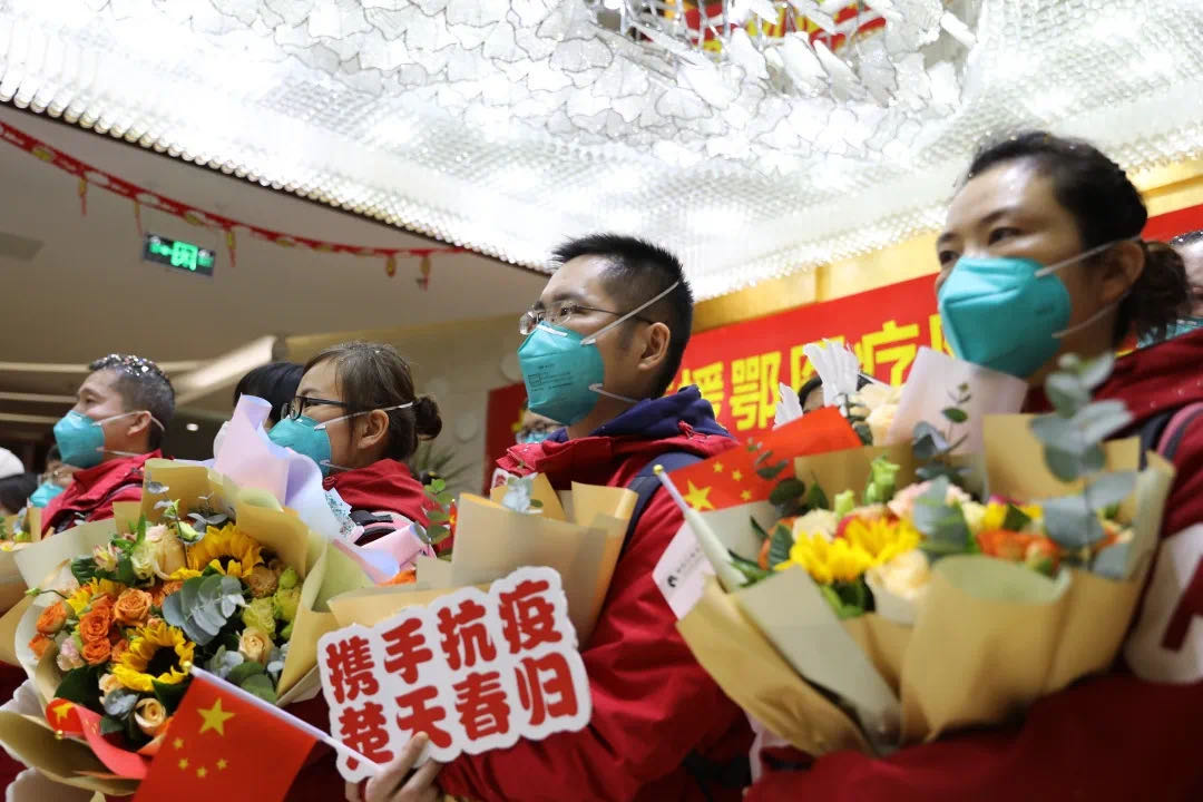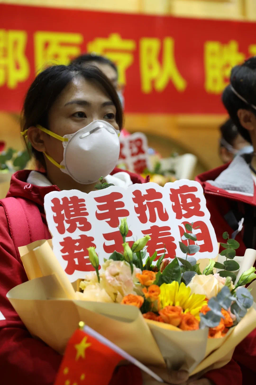 去时雨雪纷飞,归来草长莺飞。3月31日傍晚,北京大学国际医院援鄂医疗队20名白衣战士在湖北鄂州奋战55天后圆满完成任务,满载鄂州人民的无限感激和不舍之情,全部平安凯旋。