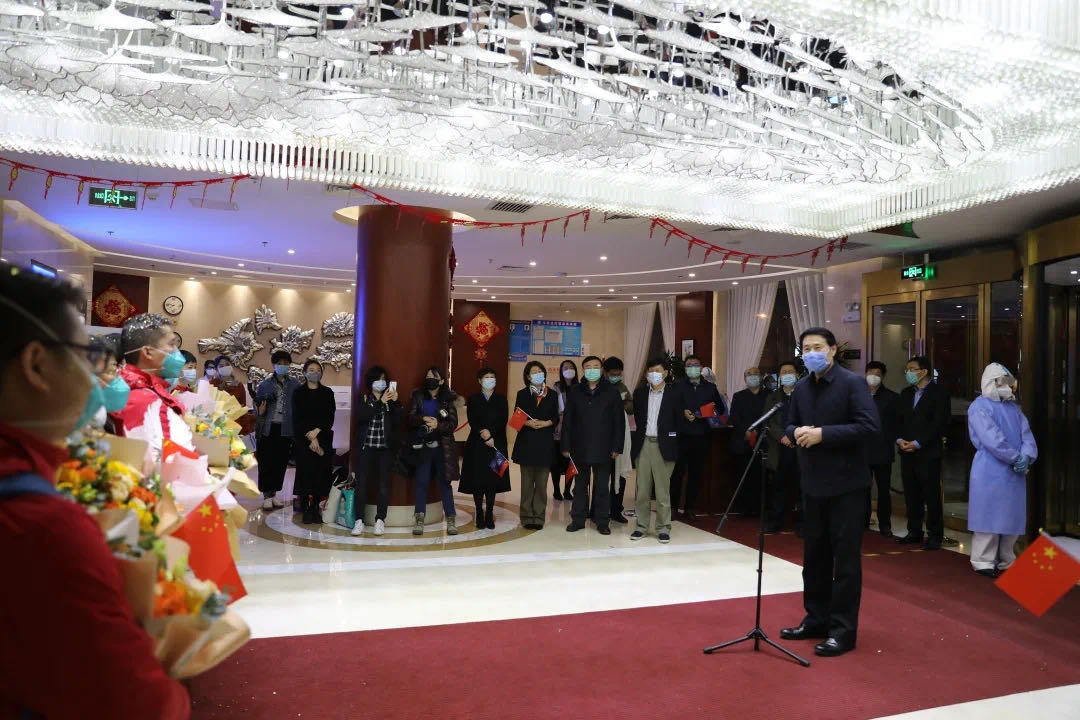 北京大学党委常务副书记、医学部党委书记刘玉村,医学部副主任刘晓光等专程迎接和慰问全体医疗队员,高度赞扬医疗队员为抗疫斗争作出的突出贡献,充分展现出北大医学人的使命担当。