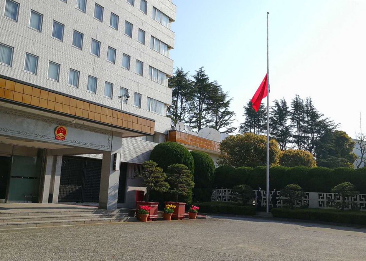 【中国驻日本大使馆下半旗】