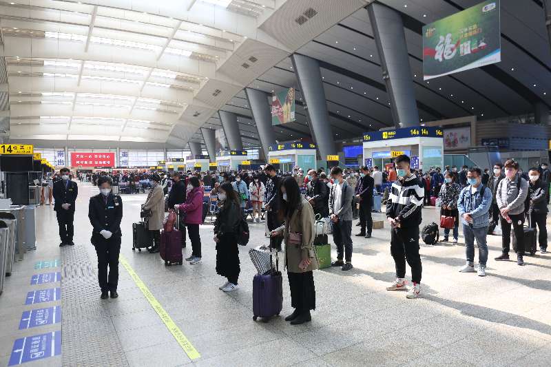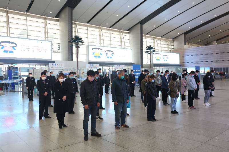 【北京南站候车大厅旅客及铁路职工默哀致意】