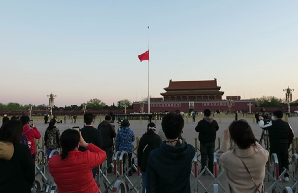 4月4日上午十时,在天安门广场,各界群众肃穆站立,默哀三分钟,悼念抗击疫情牺牲烈士和逝世同胞。当天,为表达全国各族人民对抗击新冠肺炎疫情斗争牺牲烈士和逝世同胞的深切哀悼,国务院发布公告,决定举行全国性哀悼活动。共悼逝者,寄托哀思!