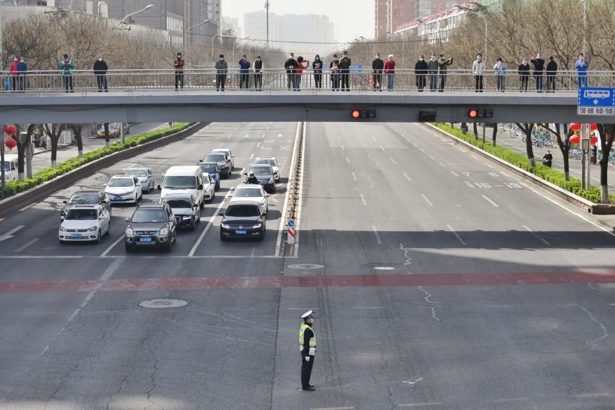 【北三环联想桥边,市民静立路边,手指天空默哀】