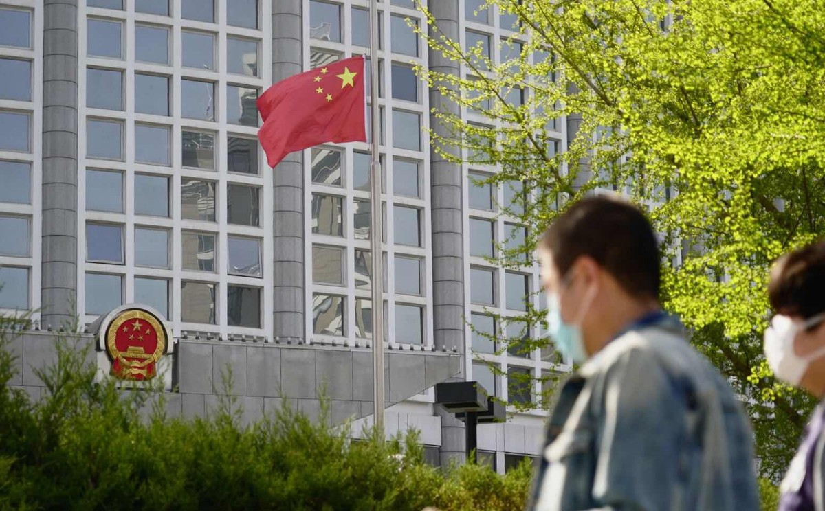 4日,中国驻日本大使馆降半旗哀悼抗击新冠肺炎疫情斗争中牺牲的烈士和逝世同胞。