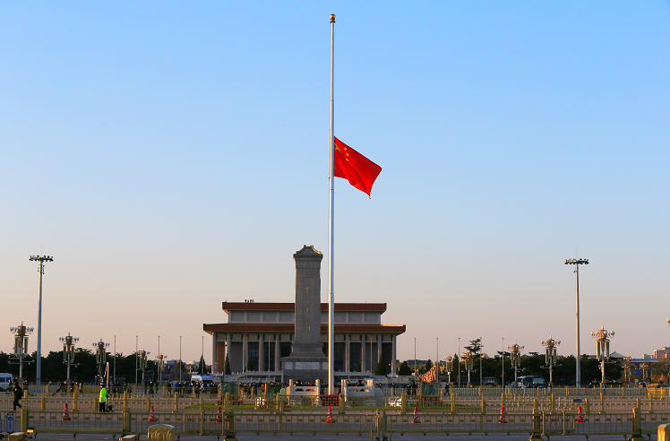 【5:54 天安门广场下半旗】