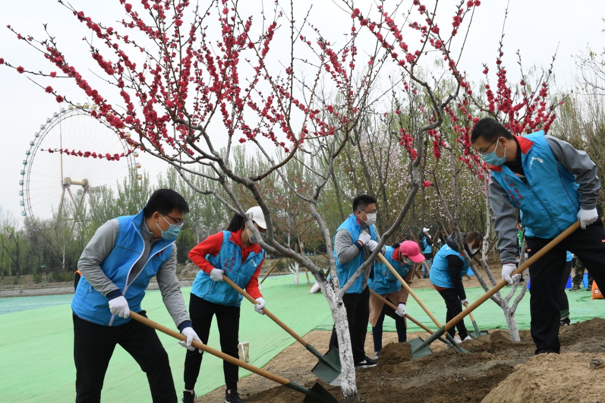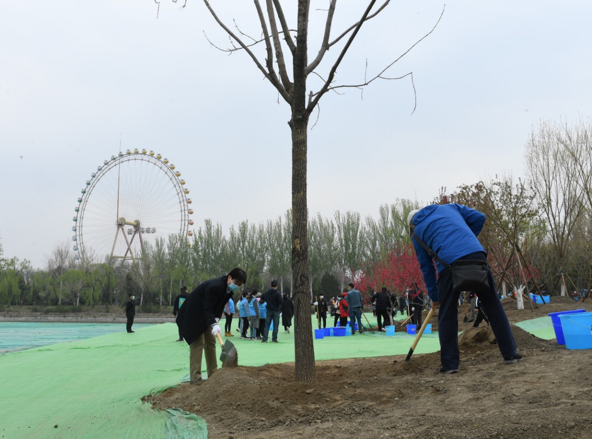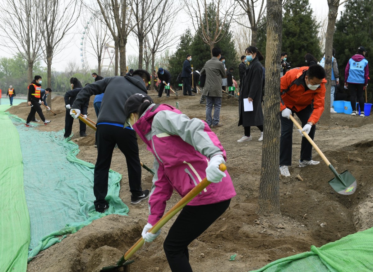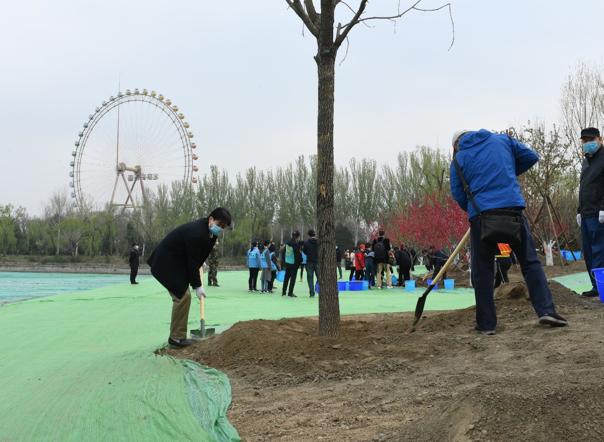4月7日上午,龙潭中湖公园桃花岛微风习习,约150位来自东城区的疫情防控一线人员代表和园林绿化干部扶苗、培土、浇水,栽植下180余株乔落木。眼下,近40万平方米的龙潭中湖公园正在建设中,将在今年年底完成主体工程,为中心城区再添绿意美景。
