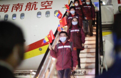 3月30日,中国抗疫医疗专家组8名成员抵达委内瑞拉首都。专家组由呼吸与危重症医学、传染病控制、实验室检测、护理等多领域专家组成,随行携带呼吸机、便携式彩超、核酸检测试剂盒及口罩等抗疫物资和药品。