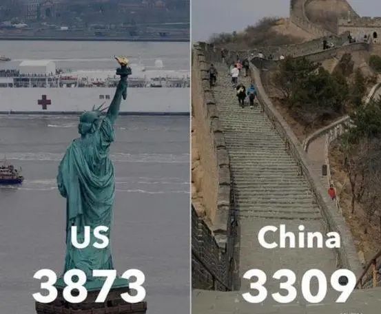 11天前,“美国之音”所作的中美对比还是:“US 3873 vs China 3309”。