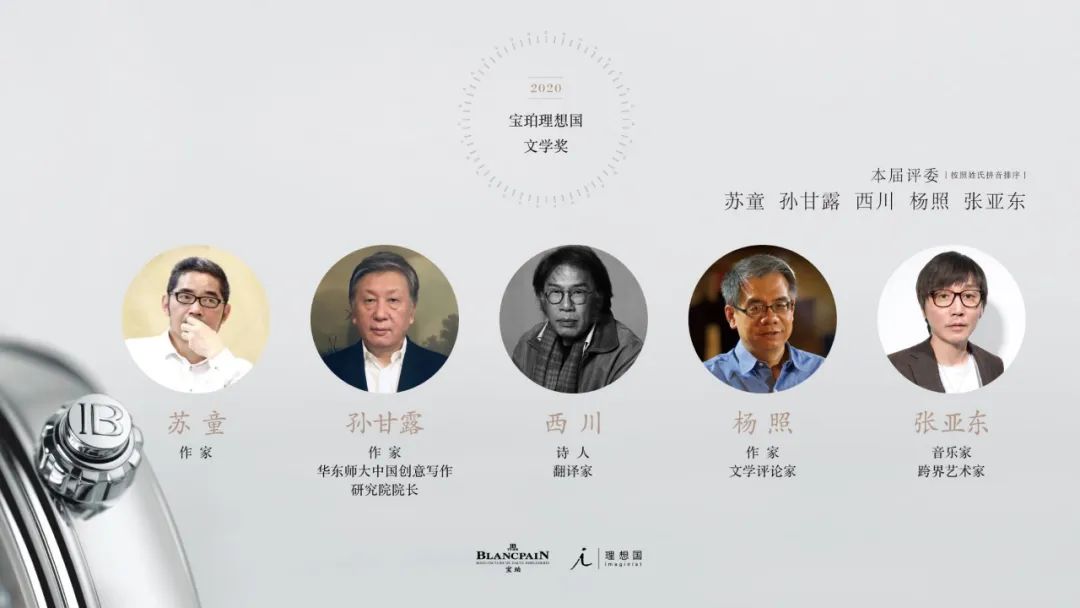 4月10日,第三届宝珀理想国文学奖正式启动,宣布2020年度主题是 “成为同时代人” ,本届评委团由苏童,孙甘露,西川,杨照,张亚东组成(按照姓氏拼音排序)。即日起至5月15日,组委会接受出版社、出版公司或作者本人提交作品。最终获奖者将于10月下旬的颁奖典礼现场公布。