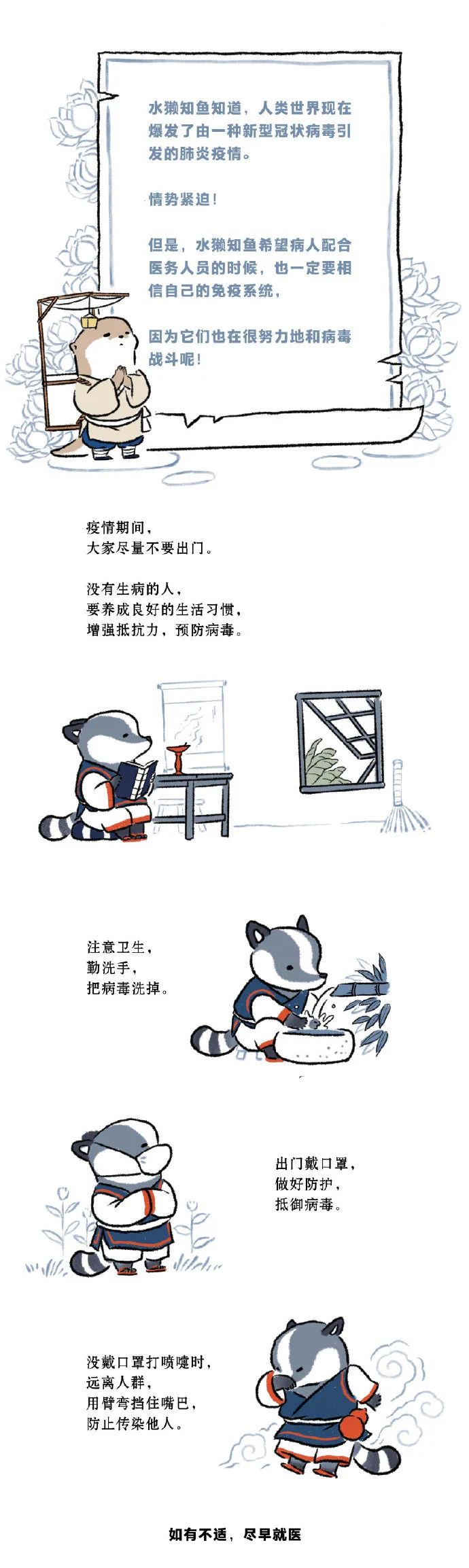 新型冠状病毒疫情期间,在家做了好多关于病毒的功课,科学真的很难。但是我用自己创作的角色——水獭先生#水獭先生知鱼旅#来演绎 ,把我了解的一些知识用轻松的方式画下来,给大家科普一下,希望大家能静下心了解病毒与免疫系统的关系,因为科学真的能带来勇气!隆重献上——《消灭病毒重案组》武汉加油!