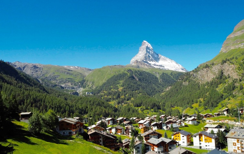 马特宏峰是阿尔卑斯山最著名的山峰,海拔4478米,因其险峻挺拔、一柱擎天的造型蜚声世界,也成为瑞士引以为傲的象征。采尔马特是世界知名的旅游度假胜地,在这里可以欣赏到包括马特宏峰在内的38座海拔4000米以上的雄伟山峰。
