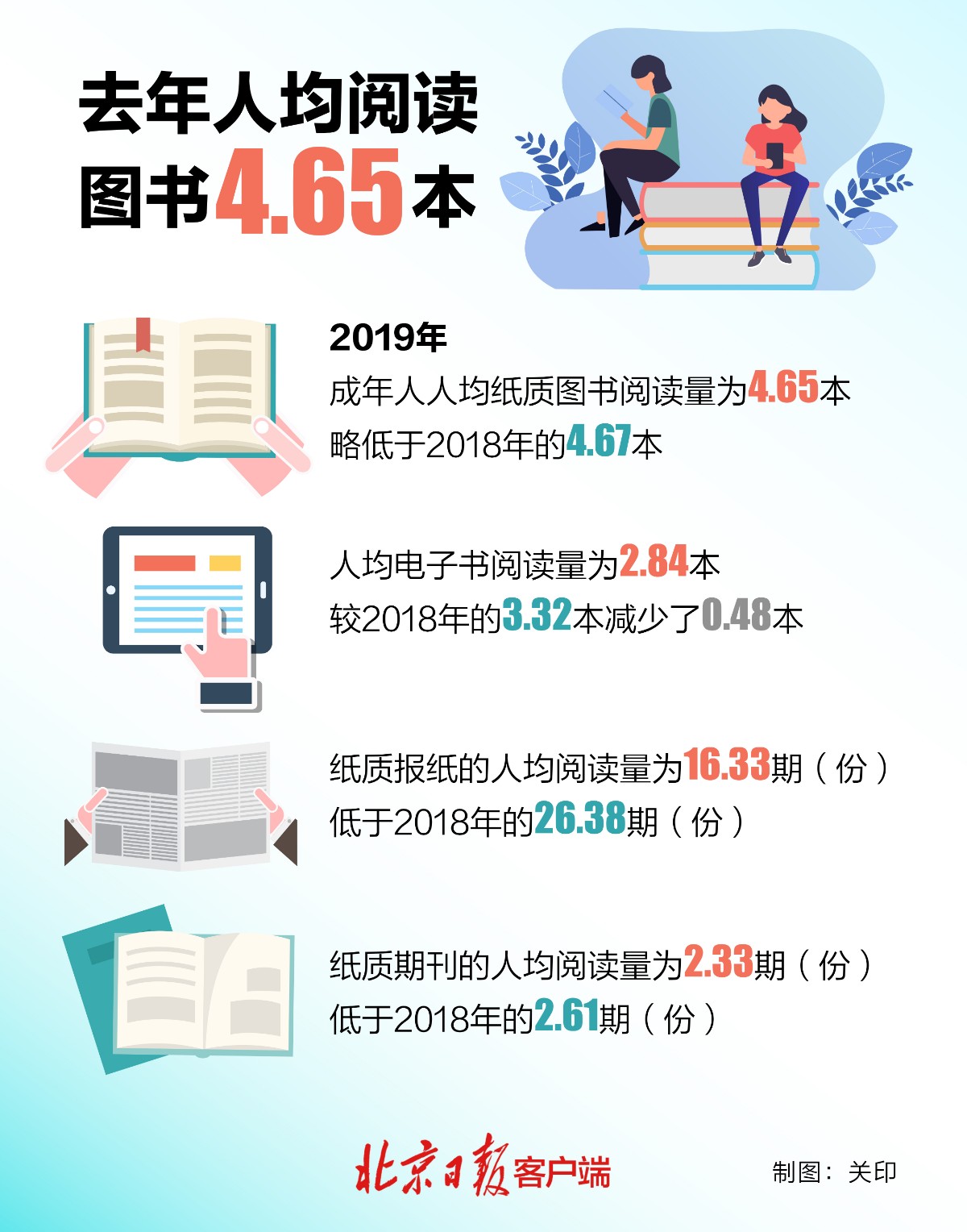 超一成国民日均阅读1小时以上 去年人均阅读图书4.65本