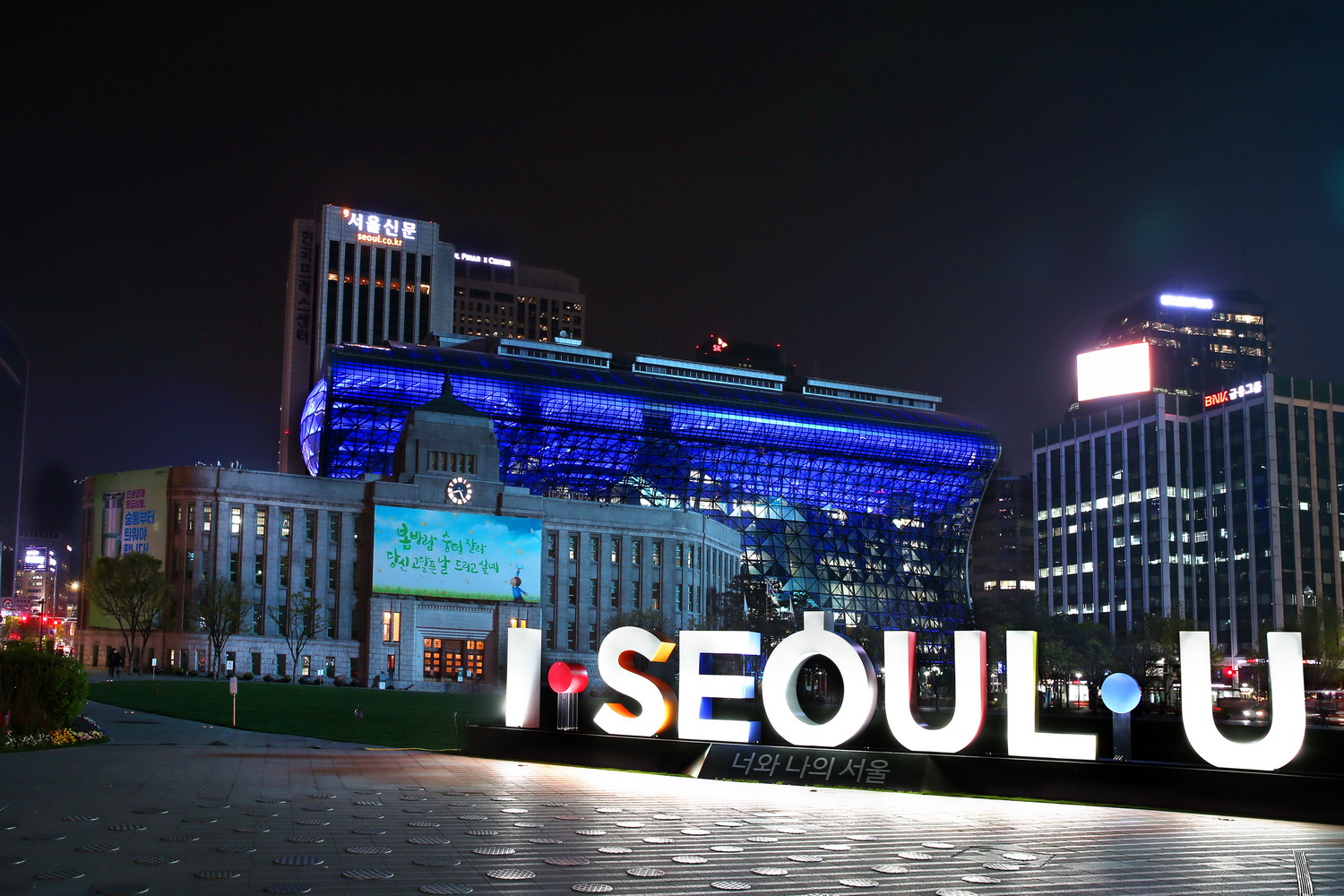 致敬抗疫人员,首尔这些地标建筑亮起蓝色灯光