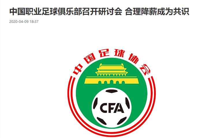 中国足协此前在官网宣布,各俱乐部就合理降薪达成共识。