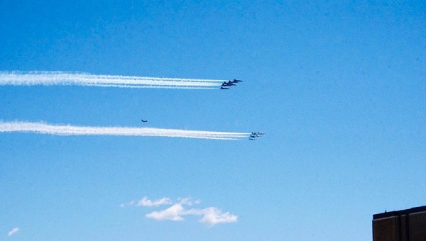 当天中午12点左右,飞行编队飞过纽约和纽瓦克,在纽约都会区大约停留了35分钟,然后前往特伦顿和费城。此前,美国空军上校约翰·考德威尔说:“我们希望借此方式代表美国人民对那些在第一线与新冠肺炎作战的抗疫人员表示感谢,他们是最值得敬重的。”
