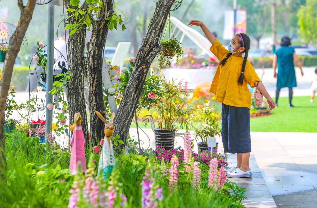 “五一”假来临,伴随着不断升温的天气,各大商场人气持续回暖,位于顺义空港街道的祥云小镇打造户外生态市集,56种1.2万株春季鲜花构筑了一座300 平方米的生态花园,造景俏皮童趣,并将餐饮等店铺搬到室外,在露天开阔暖阳下热闹开摊。