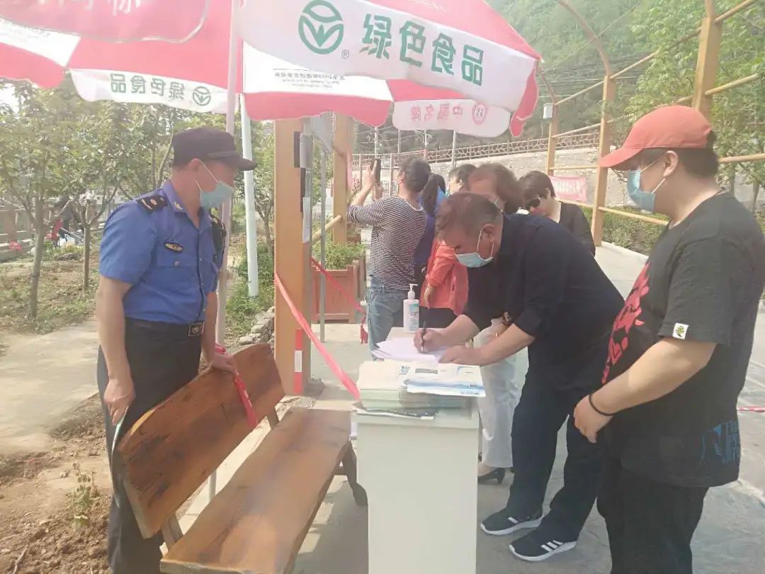 多力量在岗值守,共计有机关干部121人,村干部129人,下沉干部63人,在职党员56人,青年志愿者135人,消防灭火人员599人,劝导队伍43支在岗、在位,保障群众安心过节;多部门督查检查,每日对已复工的民俗户食品安全及测温登记、“公筷行动”、垃圾分类等疫情防控措施落实情况进行2次联合检查,对发现的问题,要求立即整改。